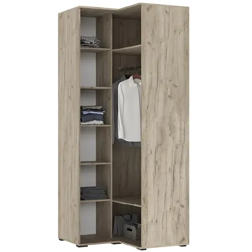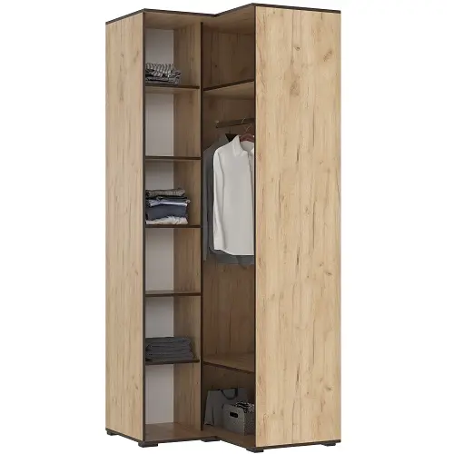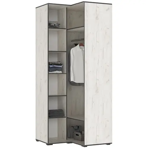 Шкаф угловой Норд — спроектирован с учетом потребностей современной семьи: его вместительное внутреннее пространство разделено на удобные зоны, что помогает поддерживать безупречный порядок и быстро находить нужные вещи.